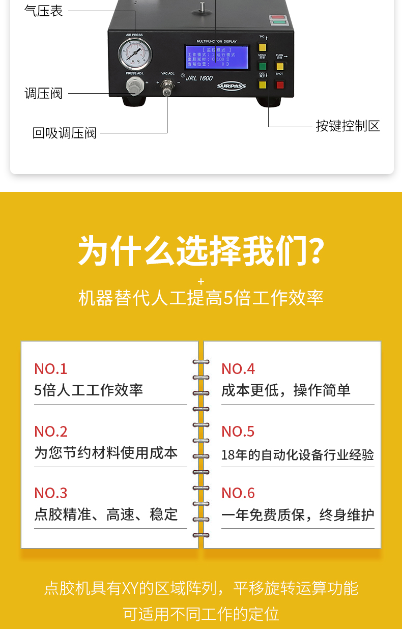 ·非常感謝您購買最新款JRL 1600數位氣壓式圓形數控點膠機。